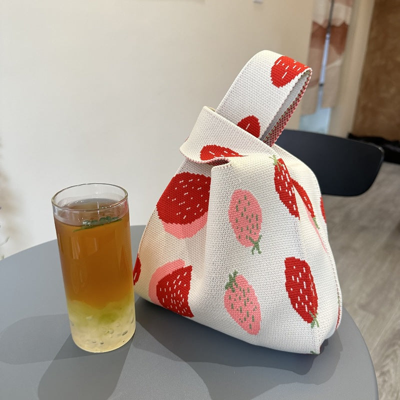 Mommy Bag Candy Color Girls Storage Bag Mini Knot Knitted Bag Small Ins Handbag Strawberry Wrist Bag Women Tote Bag