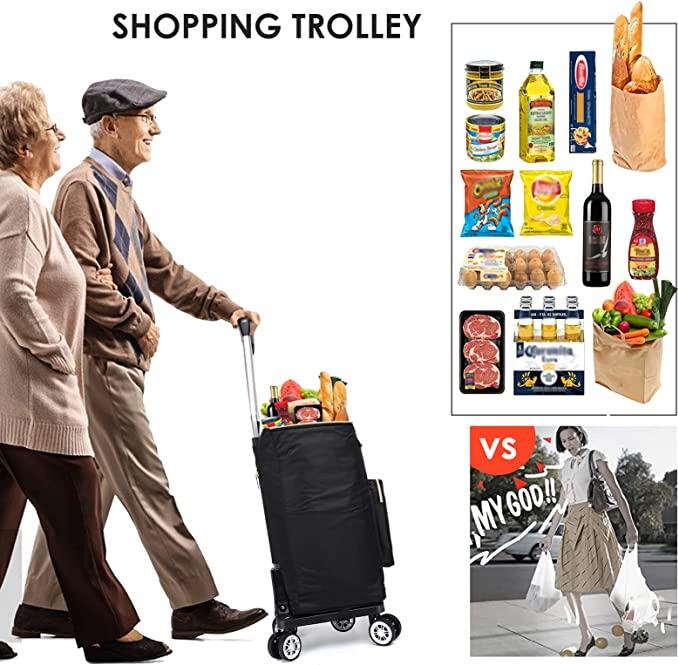 Portable Folding Design - Thanks to its folding design, this shopping cart can fold in half when not in use. It's small enough to fit in the trunk of a car while shopping.The shopping bag has a handle so that the shopping bag can be used separately.